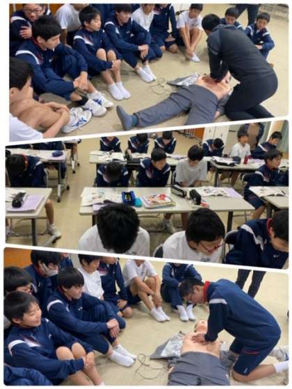 2年生の保健体育の授業では、心肺蘇生の単元を学んでいます。