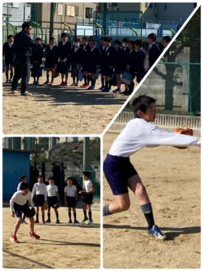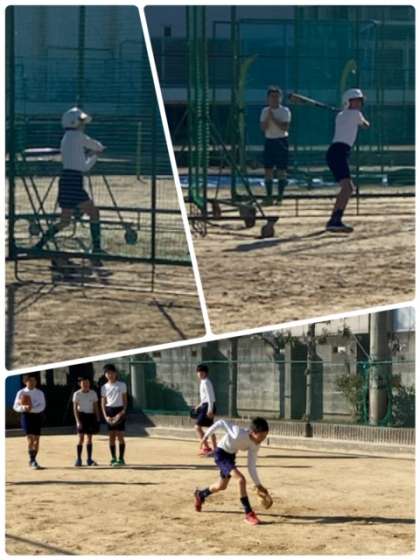 ノック・バッティング・素振りの3グループに分かれて練習体験をしています。みんなが入部してくれると、活気づきますね。