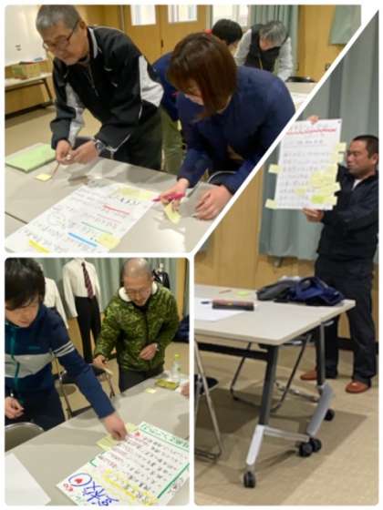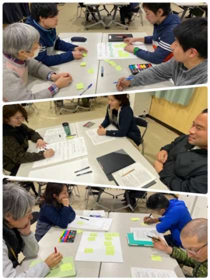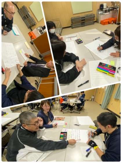 今年度に立てた「運営に関する計画」の最終評価をもとに、「横堤中学校をよりよい学校にするために」をテーマにグループワークをしてます。