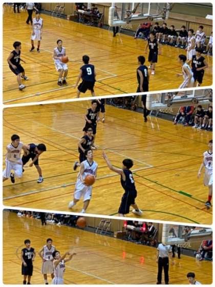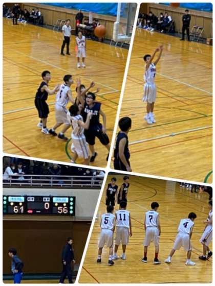 終盤、だいぶ追い上げられましたが、最後の粘りをみせて61対56で勝利しました!見事、練習の成果を発揮して、よくがんばりました!みんなで力を合わせて、次も頑張れ!