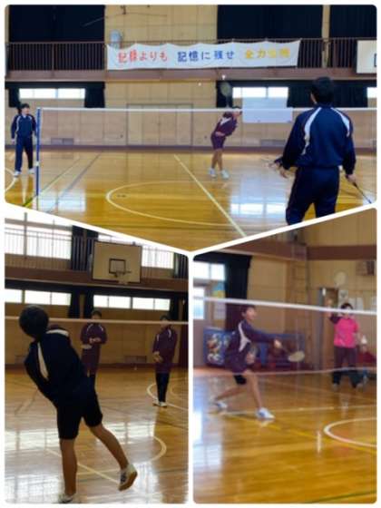 3年生の男子保健体育の授業では、バドミントンを行っています。担任の先生が、飛び入りで参加して生徒たちとラリーをしています。