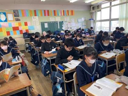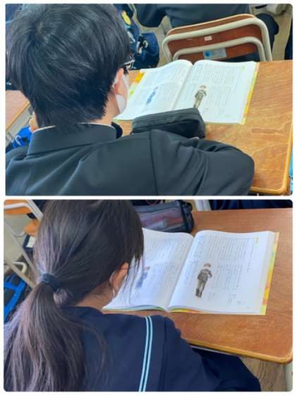 2年生の道徳の授業では、「アイツとセントバレンタインデー」の教材を学習しています。これまでの自分を振り返り、友達にとって自分はどのような存在であるかを見つめ、望ましい友情の在り方について考えていきます。