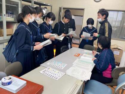 公立一般選抜出願後、学校に戻ってきました。受験番号や注意事項などを確認しています。たくさん待ち時間があったところもありましたが、みんな無事に帰ってきました。