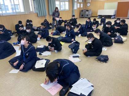 1年生もそれぞれ特別教室で、最後の学級活動を行っています。
