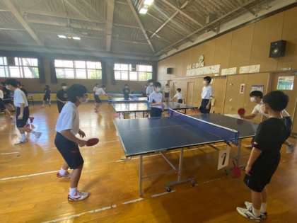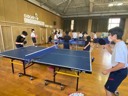 元気に生徒たちが卓球しています。久しぶりながら、いい声を出して頑張っています!