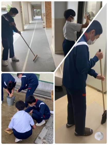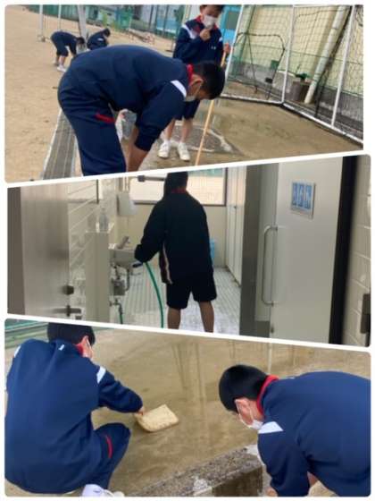 校舎や廊下、トイレの清掃を熱心にしてくれているのは、野球部とバスケットボール部です。肌寒い中、丁寧にしてくれてありがとう!