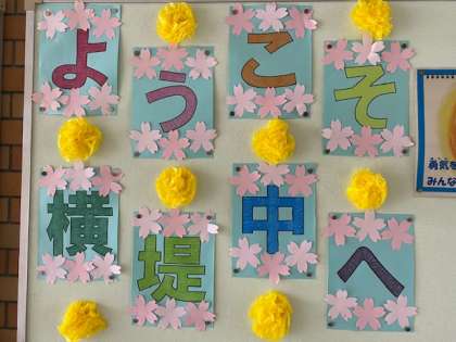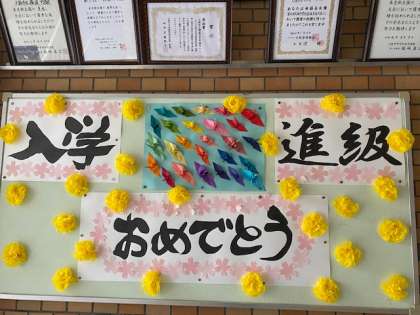 きれいになった校舎や廊下に、新入生を歓迎する掲示物が飾られました。