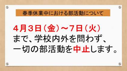 4月3日 部活動の中止について