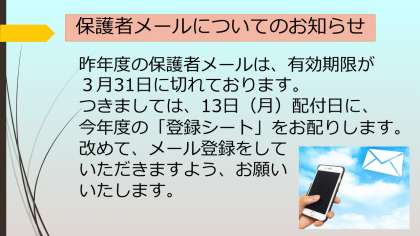 4月9日 保護者メールについてのお知らせ