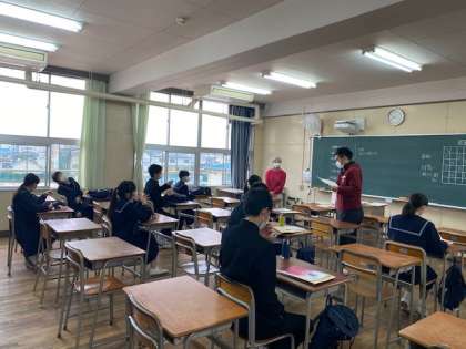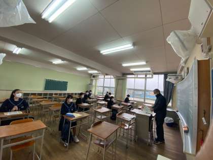 健康観察の徹底と家庭での学習について説明しています。最高学年の自覚と責任感をもつようにしましょう!