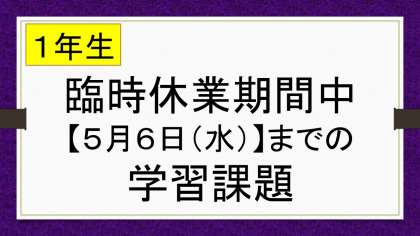 1年生も臨時休業延長に伴う、学習課題の追加があります。