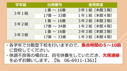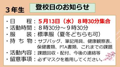 5月12日 登校日のお知らせ【追加】3年生