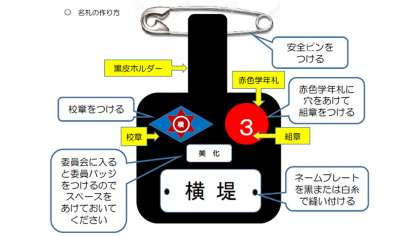 つきましては、名札の付け方について説明プリントを準備しましたのでご覧ください。ご不明な点がありましたら、学校までお問合せください。