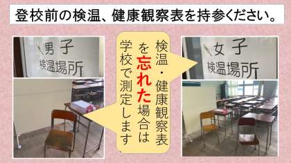 必ず、マスクの着用、検温・健康観察表持参をお願いします。