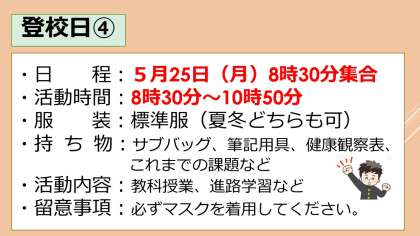 5月19日 3年生の登校日変更について