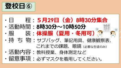 詳細については、配付文書「臨時休業期間中の登校日の変更について」をご覧ください。