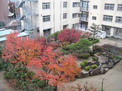 写真は、11月26日(水)朝の中庭です。雨上がりで一段と紅葉が映えていました。