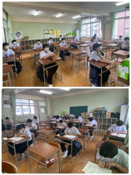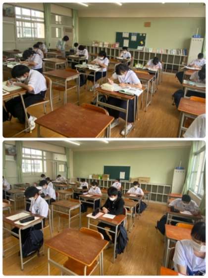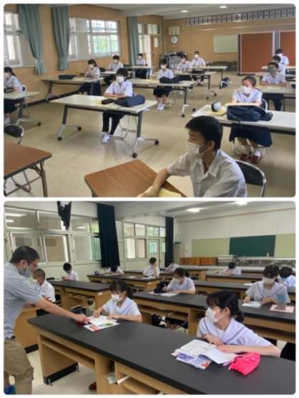 これまでの課題を確認したり、新しい教科書やワークに記名したりしています。「早く学校がはじまればいいのに」とつぶやいている生徒もいるようです。