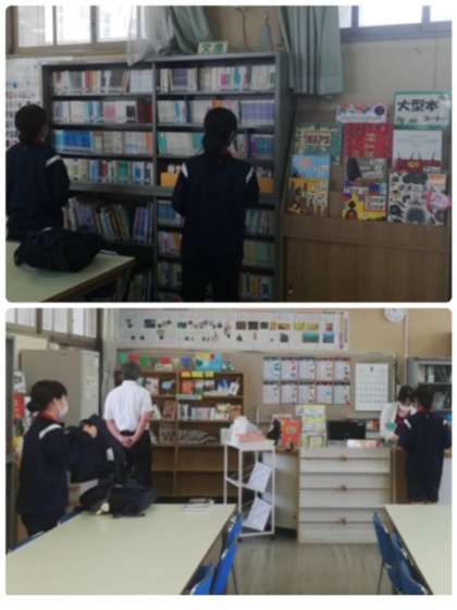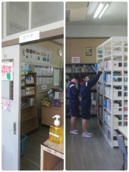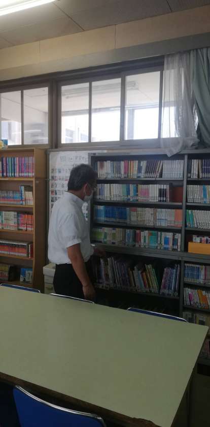今日の図書室利用の人数は、少なかったです。さすがの3年生は、学校再開にむけて勉強モードが全開なのかもしれません。校長先生も熱心に本を見ておられました。