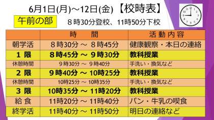 5月29日 6月1日学校再開・分散登校