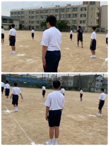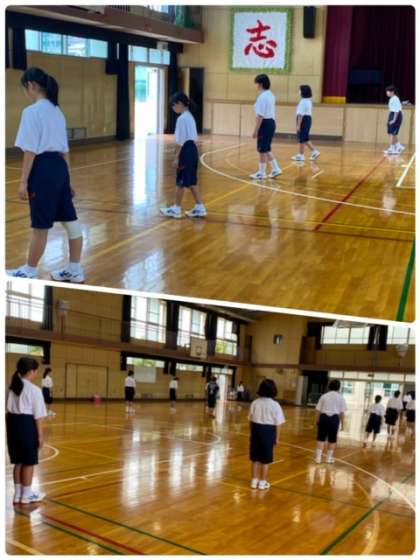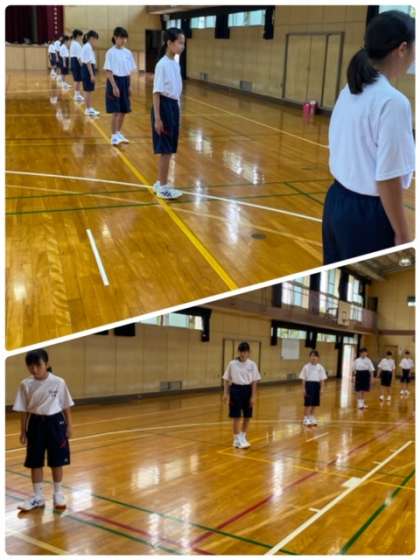 感染リスクを可能な限り低減させるように、ソーシャルディスタンスを充分にとっています。中学校の体育の授業をしっかりと身につけていきましょう。