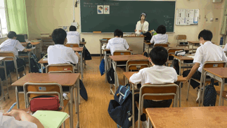 言語活動を行うにあたり、生徒の身近な暮らしに関わる場面や気持ちを伝える言語の働きを取り上げるようにしています。