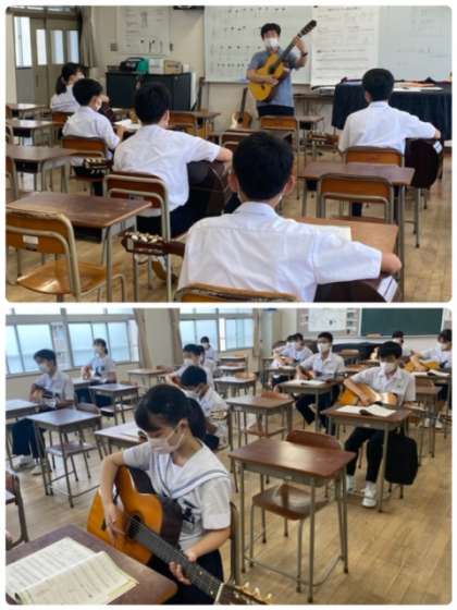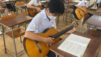 3年生の音楽の授業では、ギターに取り組んでいます。