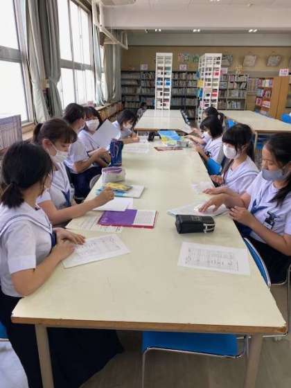 文芸部は、図書室で活動を行っています。久しぶりの活動に、みんなとてもうれしそうです。