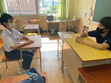 臨時休業中の過ごし方や2年生への意気込み等を聞いています。横中の先輩として、自覚をもった行動ができるように期待しています。
