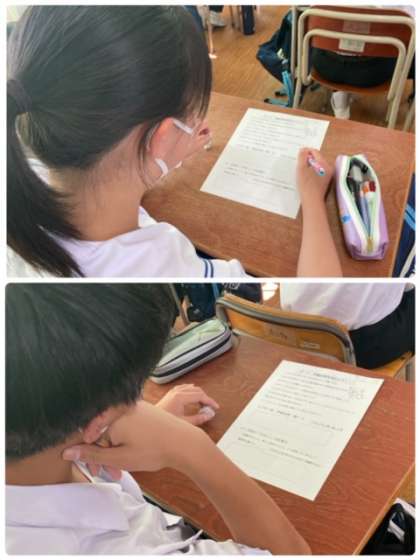 2年生の特別活動の時間では、個人と学級の1年間の目標を考えています。