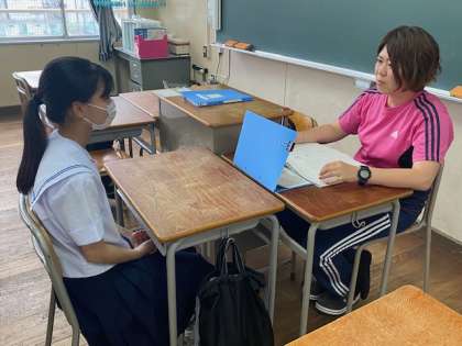 自分の進路について、どんな高校に行きたいかも聞いています。具体的な名前をあげる生徒もいるようで、しっかり考えられています。