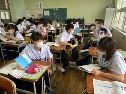 英語では、聞き手、読み手、話し手、書き手に配慮しながら、主体的に外国語を用いてコミュニケーションを図ろうとする態度を養うことを目標としています。