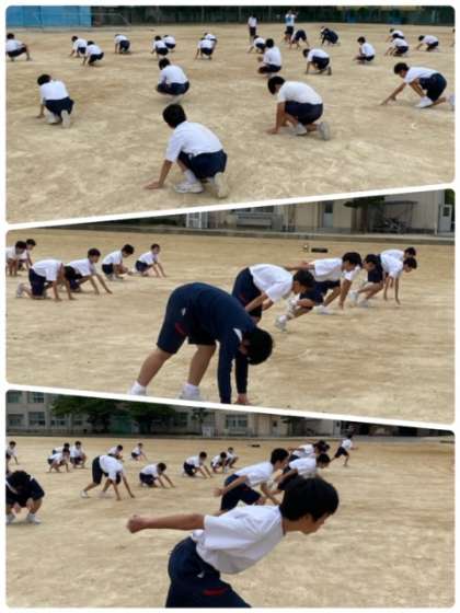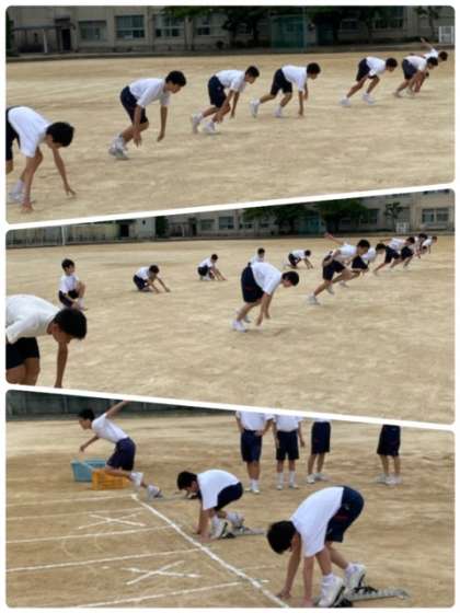 2年生男子保健体育の授業は、グラウンドで50メートル走の練習を行っています。