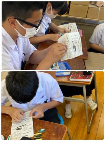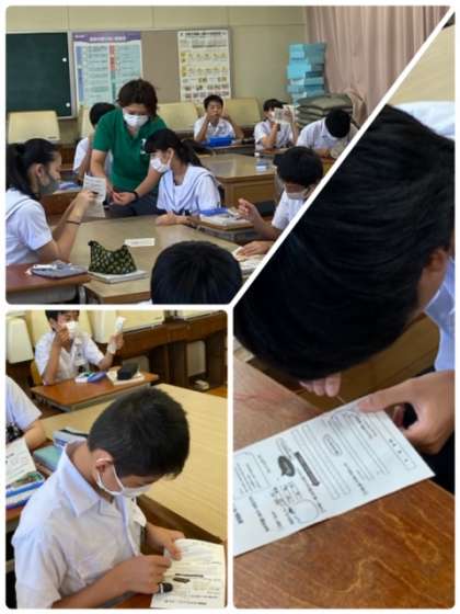 裁縫の練習を熱心に行っています。3年生ともなると、玉留め・玉結び・波縫い・返し縫いがスムーズにできる生徒がたくさんいるようです。