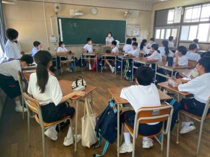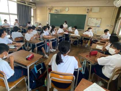 男女別に順番に行うため、クラスに人数がそろわない時間となります。学級では、クラス目標を決めて、掲示するための方法をみんなで考えています。どんなものができるかな?