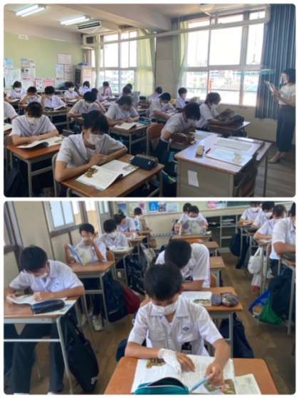 先生たちがローテーションをして、各学級で授業をしています。昨年度から教科化された道徳の授業では、生徒たちの心の成長のために学びを深めています。