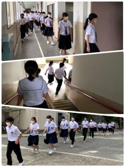 4限目は、地震想定の避難訓練を行いました。新型コロナウイルス感染症対策を講じた訓練のため、学年ごとに分散して集合整列点呼します。