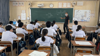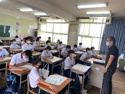 3年生の社会の授業では、実力テストの返却・解説を行っています。