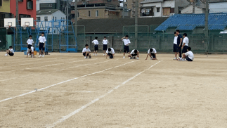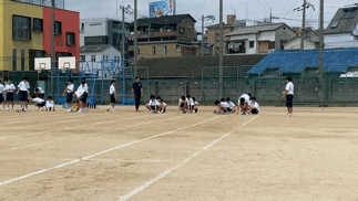 2年生の男子保健体育では、グラウンドで50m走を行っています。