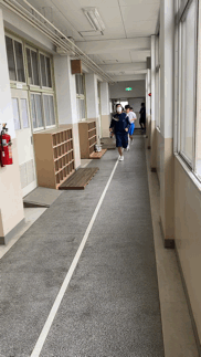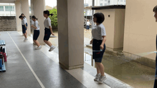 あいにくの天気のため、サッカー部・男子バスケットボール部、バレーボール部が廊下でトレーニングを行っています。