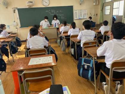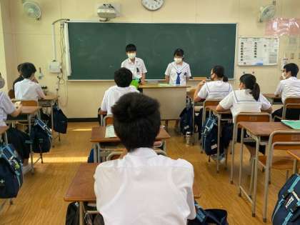 日直が進行し、今日の授業報告と明日の授業の確認を行っています。各教科係が持ち物や宿題を報告し、メモをとる生徒もいるようです。そして、掃除当番が清掃を行っています。