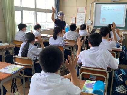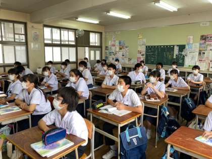 自分で考え誠実に実行し、結果に責任をもつことをねらいとした教材を学習しています。準備されたパワーポイントに生徒たちは、興味関心をよく示しています。