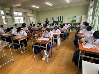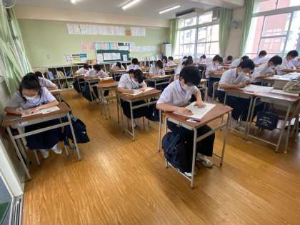 本日、期末テスト最終日です。あいにくの雨天ですが、最後までしっかり取り組んでいきましょう!