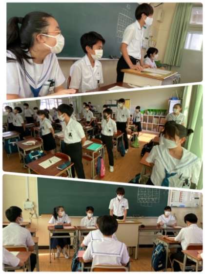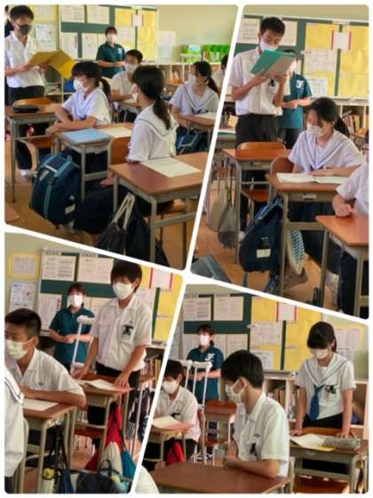 生徒会役員と各学級代表、各委員会委員長が集まって、それぞれの活動報告等を行います。前期役員の期間は短くなってしまいましたが、生徒会長からは「新型コロナで暗くなりがちな学校生活ですが、明るくするように取り組んでいきたい」とみんなに宣言しました。