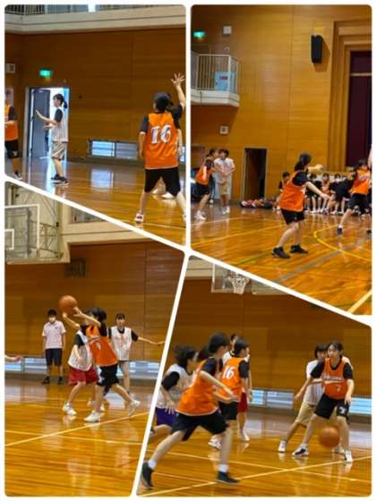 女バス部は、鶴見橋中にて3校で練習試合を行っています。