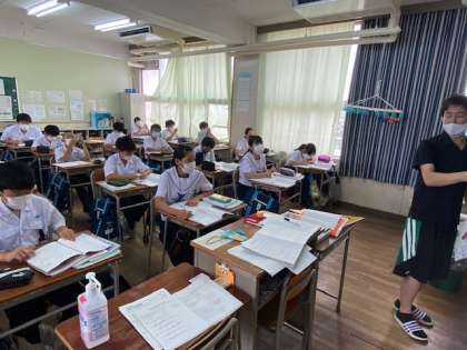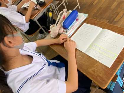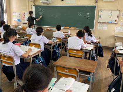 1年生の数学の授業です。初めての定期テストの結果はどうだったでしょうか?