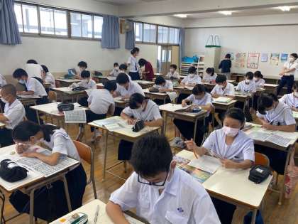 大阪市教育センターから指導主事に来ていただき、授業の進め方のついて見ていただきました。生徒たちによりよい学習が行えるよう、先生たちも日々研修を重ねています。
