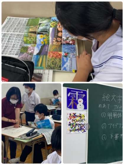 1年生の美術の授業では、絵文字に取り組んでいます。