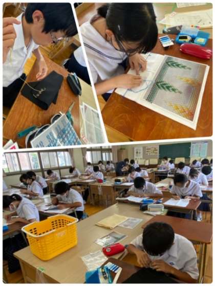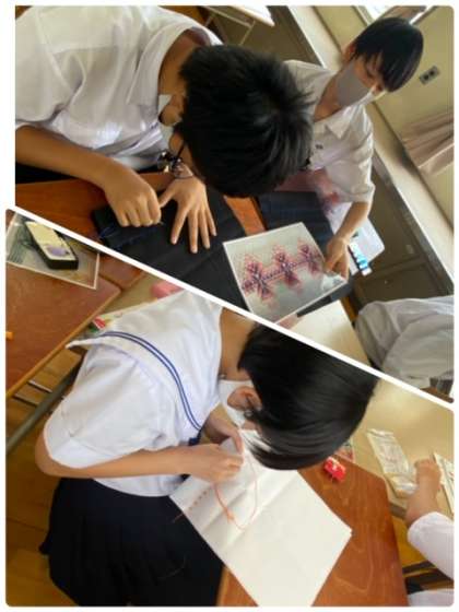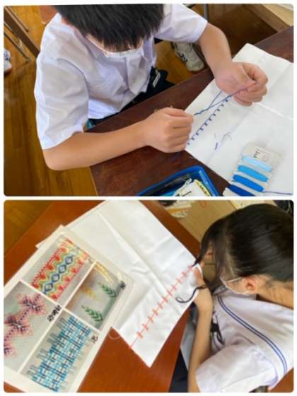 2年生の家庭科の授業では、スウェーデン刺繍に取り組んでいます。
