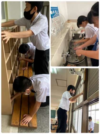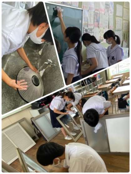1学期の汚れをしっかり落として、きれいになっていく様子がとても清々しいです。